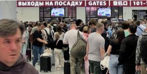 【谢列梅捷沃机场乘客阻挠航班登机事件】 莫斯科"谢列梅捷沃"机场发生乘客阻挠飞往矿泉城航班登机事件,起因是旅客对航班延误超过一天表示强烈不满。据俄新社报道,周日(7月20日)早晨,原定前一日17:10起飞的"胜利航空"DP6911航班乘客封锁登机口,要求航空公司对延误原因作出解释。 机场安保人员迅速抵达现场处置,航空公司代表被传唤至登机口向乘客说明情况。电子显示屏信息显示,该航班最终于周日才开始登机。